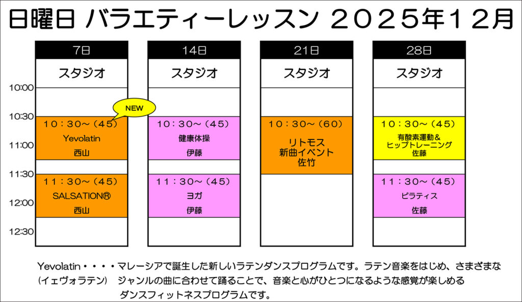 2025年12月の日曜日のスタジオレッスンバラエティー枠となります。